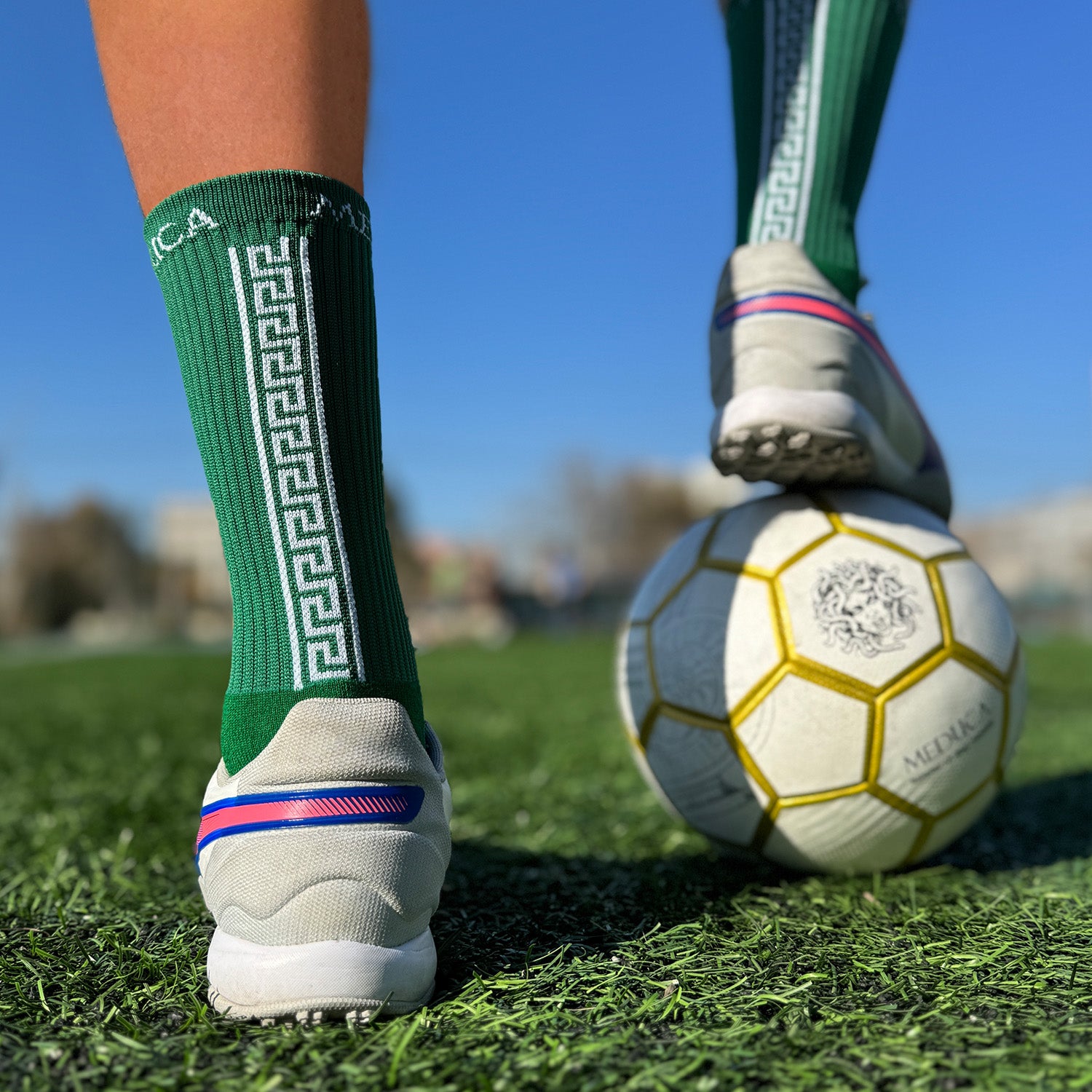 Εμπνευσμένες από την αρχαία Ελλάδα, οι MEDUCA Grip Socks είναι αφιερωμένες στις θυσίες που έχεις κάνει για να γίνεις ο GOAT. Του εαυτού σου, του κόσμου.