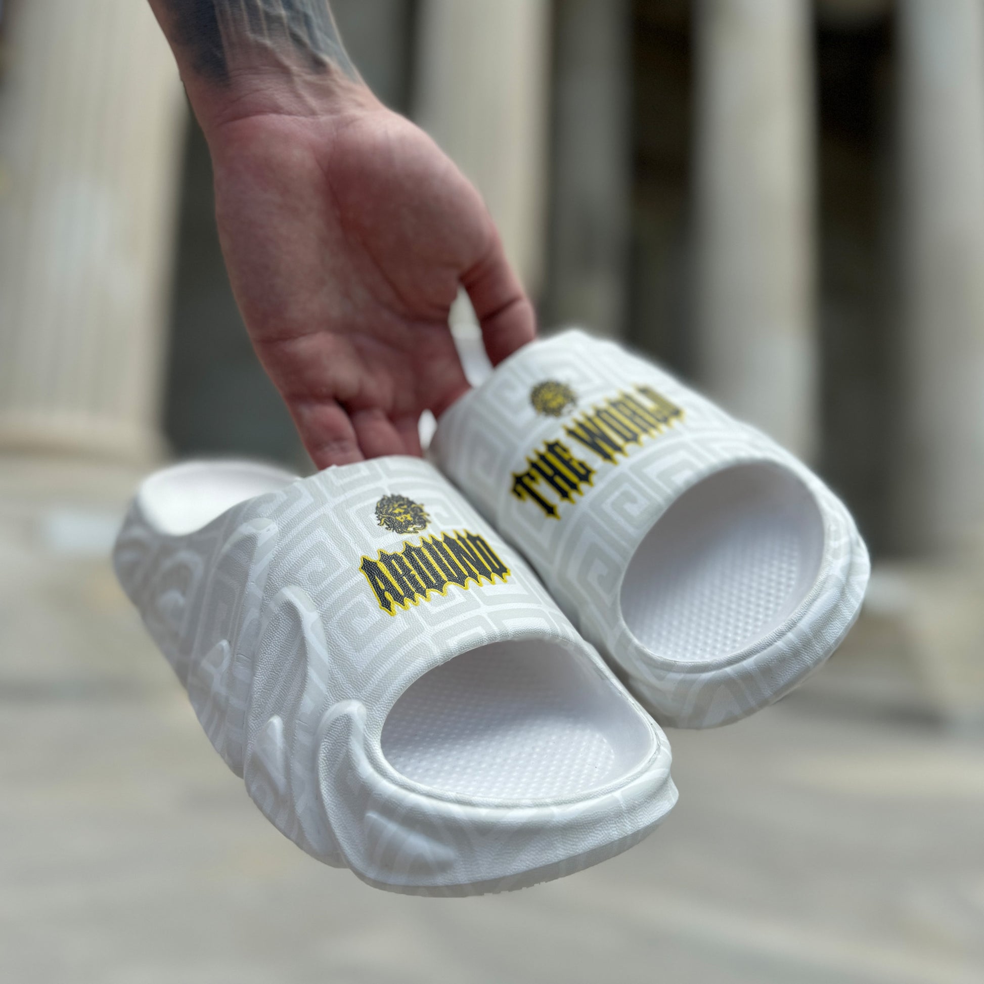 Inspired by ancient Greek design, The MEDUCA slides take their name from the most famous freestyle football trick, known as "Around the World".